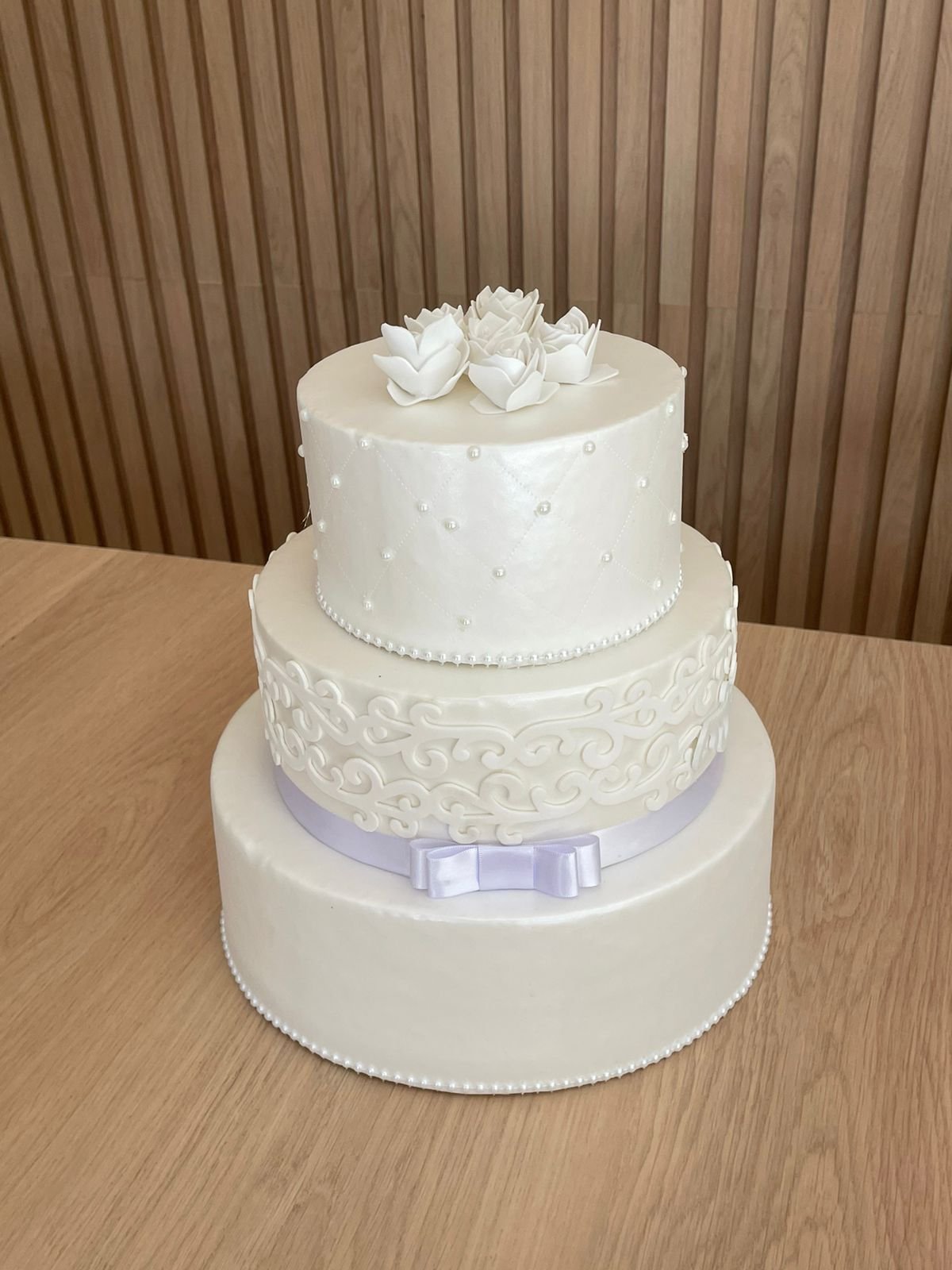 BOLO FAKE BRANCO COM LAÇO
